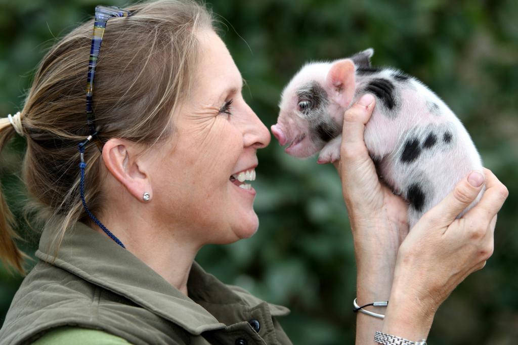 Прежде чем поросята увидят вас, они смогут услышать и почувствовать запах, поэтому говорите мягким нежным голосом, когда вы приближаетесь к их месту. Не садитесь на корточки так, чтобы вы были на уровне поросенка. Избегайте прямого контакта глазами, поросята могут чувствовать угрозу, не садитесь на землю рядом с поросенком и не ложитесь перед ним. Свиньи и поросята любят поприветствовать людей, нюхая руки, ваши руки должны быть чистыми.