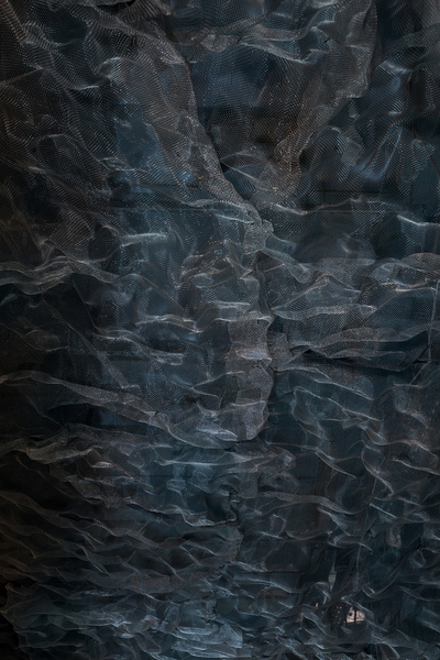 Сочетание белого и темно-синего цветов поддерживает образ песчаного берега, на который набегают морские волны. Потолки выполнены из мятой сетки, напоминающей рябь на поверхности воды, если смотреть на нее из глубины. Большие окна в пол выходят на набережную, размывая границы между интерьером и блестящей гладью Москва-реки.