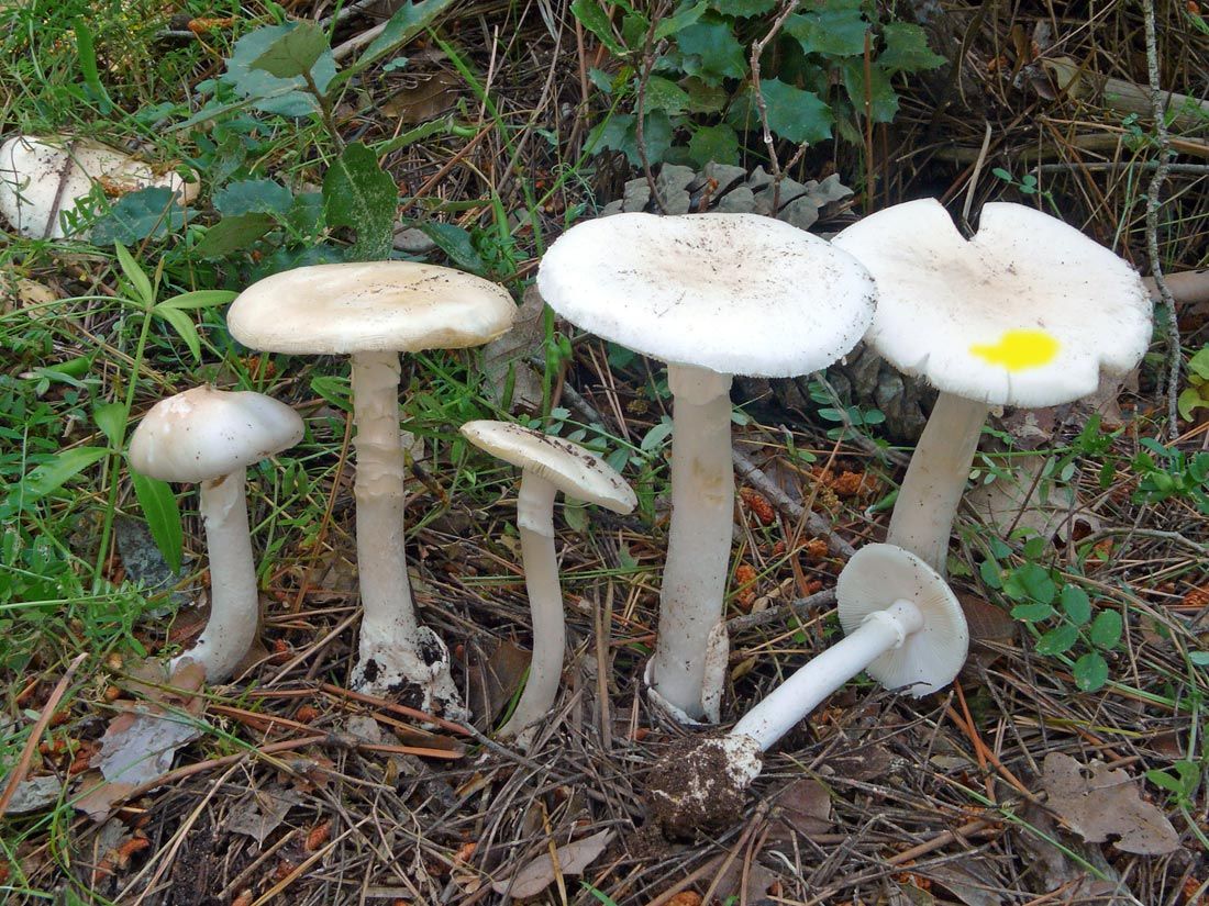 - Съедобные виды: вольвариелла слизистоголовая (Volvariella gloiocephala), белый гриб-зонтик (Macrolepiota excoriata), поплавок белый (Amanita alba). Отличить их можно по более приятному грибному запаху. Вольвариелла отличается более темным окрасом шляпки, а белый зонтик – отсутствием вульвы.