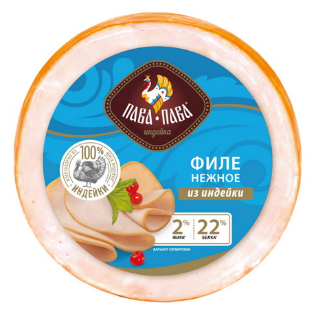 Первые отгрузки колбасных изделий из мяса индейки под брендом «Пава-Пава» в федеральные розничные сети начались на этой неделе. Сейчас их линейка включает три вида продукции — сосиски, ветчину «Мраморную» и филе «Нежное». Все продукты производятся из 100% мяса индейки (филе грудки и бедра). В их составе высокое содержание белка и низкий уровень жира. В дальнейшем ассортимент колбасной линейки «Пава-Пава» будет расширяться.
