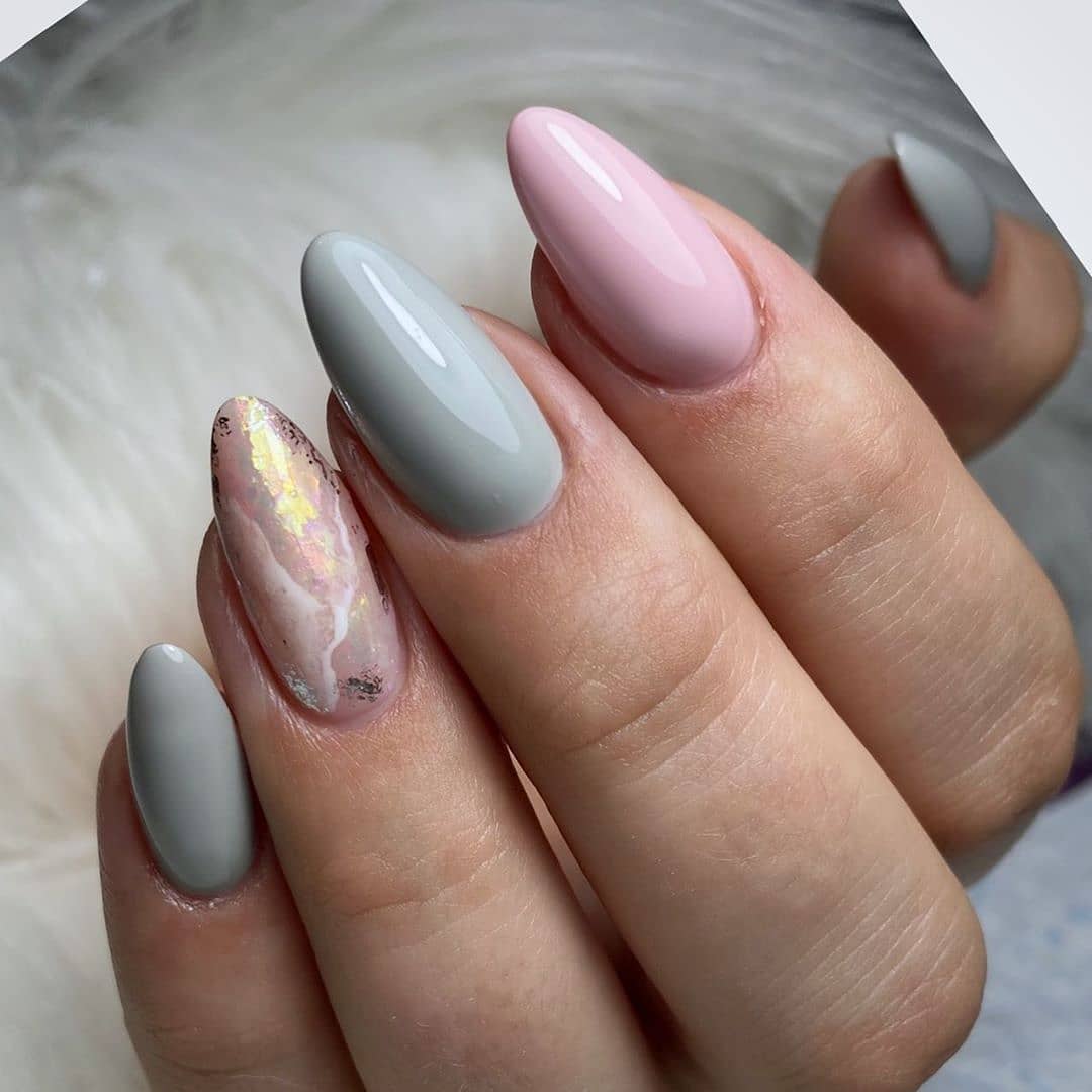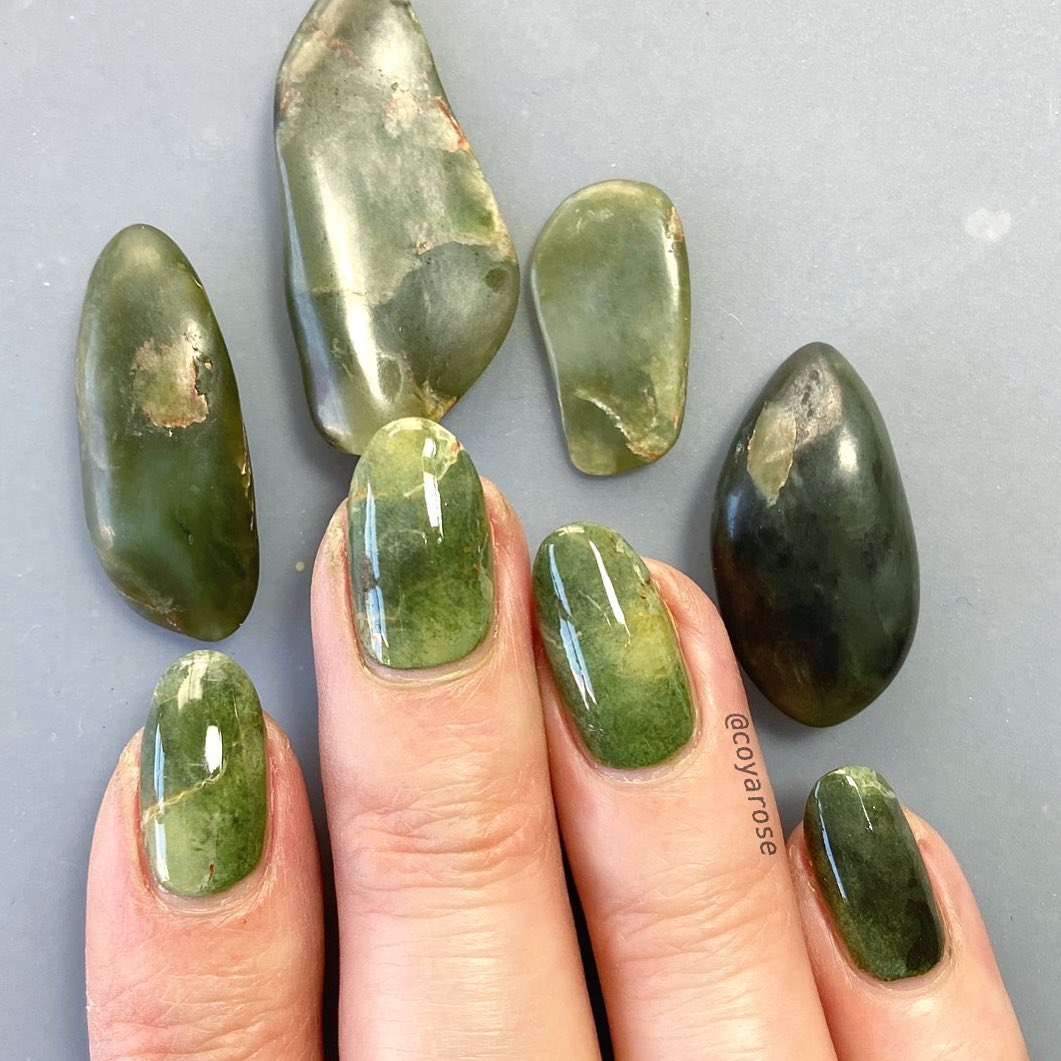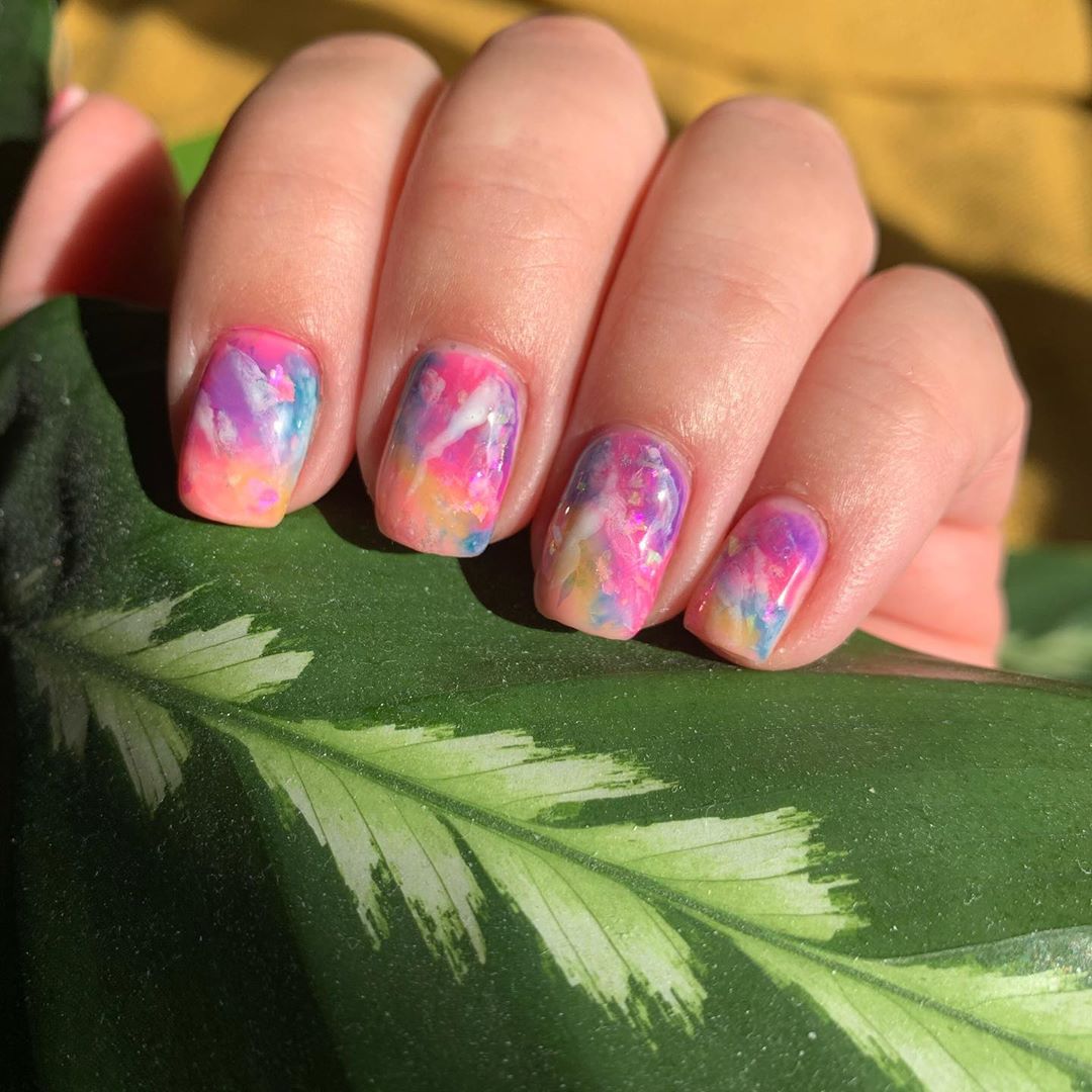 Мраморный маникюр не теряет популярности уже несколько лет подряд, но в этом году получил второе дыхание. Теперь «минеральное» покрытие стало цветным, в конфетных оттенках голубого или розового, или максимально приближенным к естественным цветам и фактуре полудрагоценных камней. Особый шик — цветной мраморный маникюр с золотыми акцентами. Например, в виде мелкой крошки, естественных золотых прожилок, имитирующих рисунок камня, или тонких линий по контуру ногтя или ногтевой лунки.