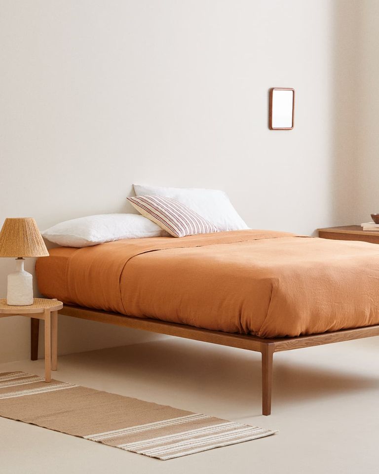 Приобрести новое постельное белье — самый простой способ освежить цветовую гамму спальни. Простыня, подушки и пуховое одеяло в терракотовых оттенках создадут атмосферу безмятежности, располагающей к отдыху. Выбирая комплект, обращайте внимание на ткань: мягкие текстуры будут смотреться более выигрышно.