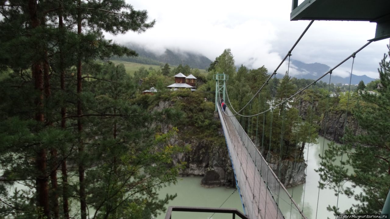 Путь шаткий, при ходьбе мост колышется и людям, боящимся высоты, страшно. Высота немалая, до воды 15 м.