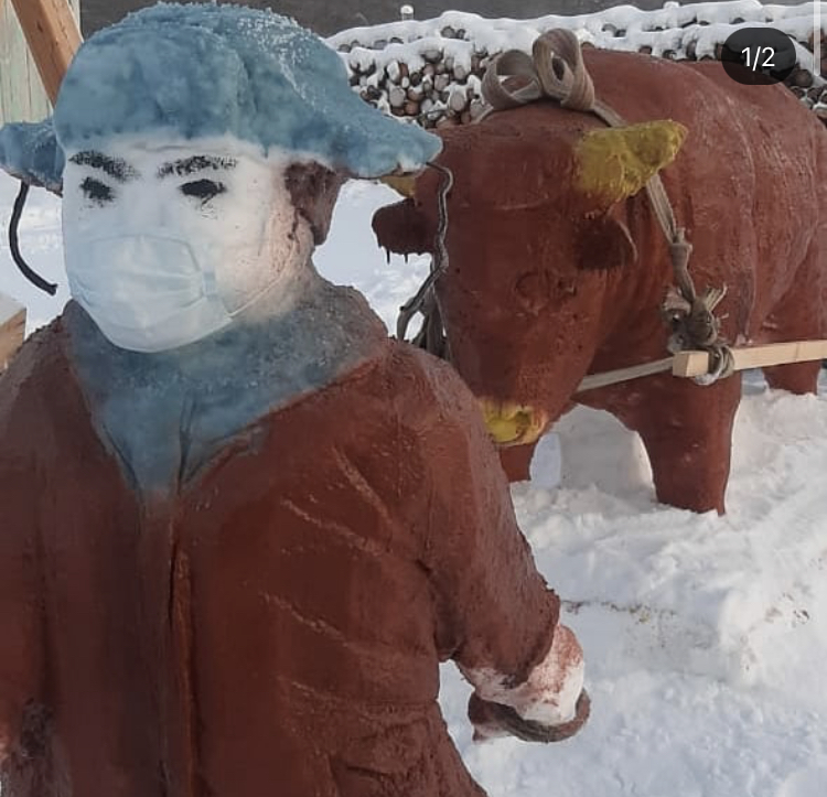 Милейшего бычка слепил из снега учитель физкультуры Альберт Слепцов в селе Сватай Среднеколымского улуса.