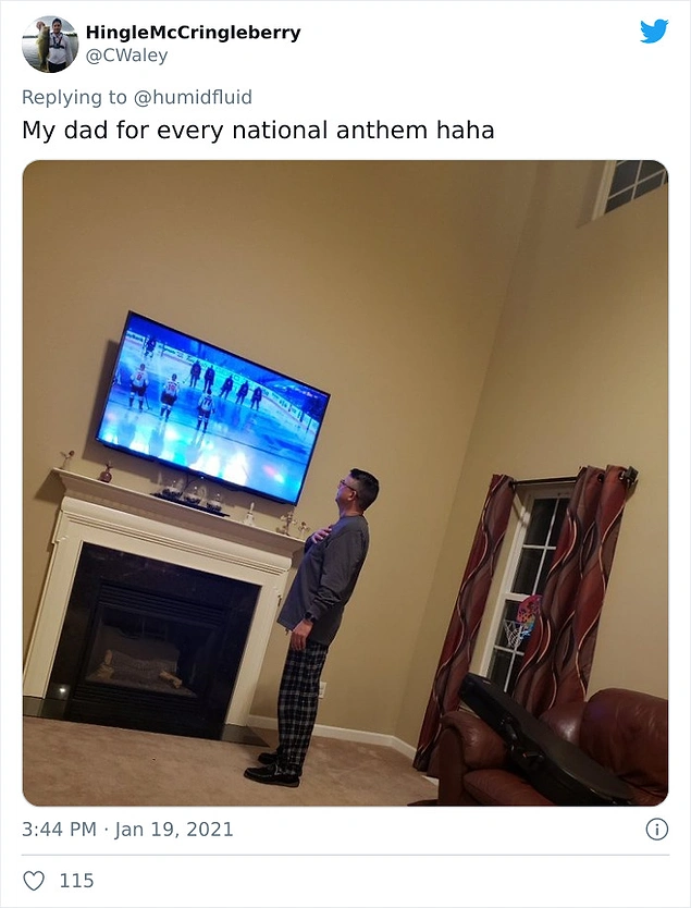 1. "Реакция папы каждый раз, когда звучит национальный гимн.Ха-ха."
