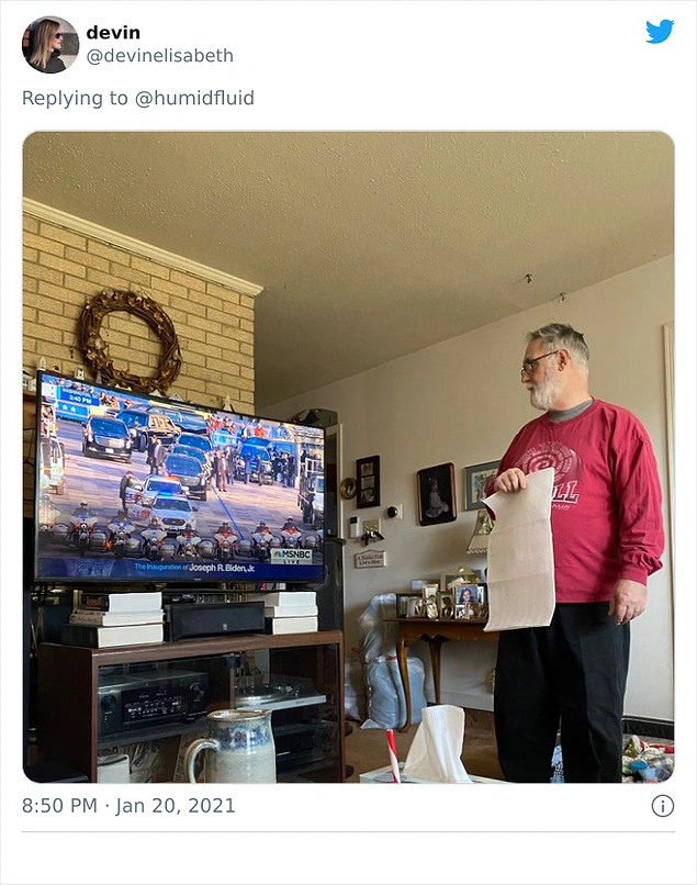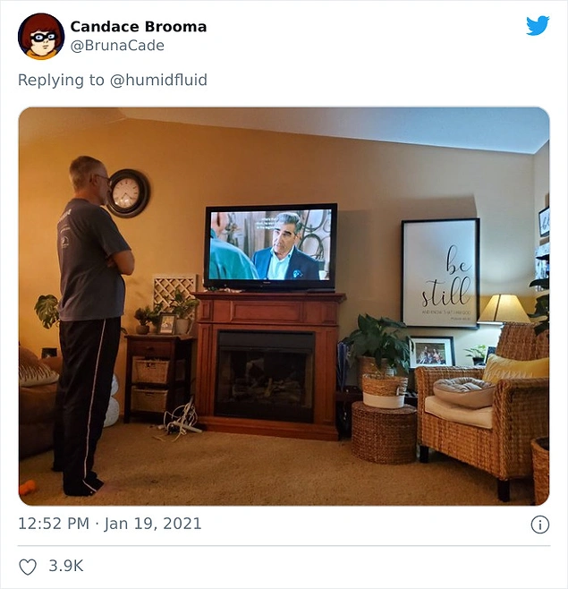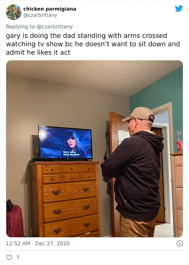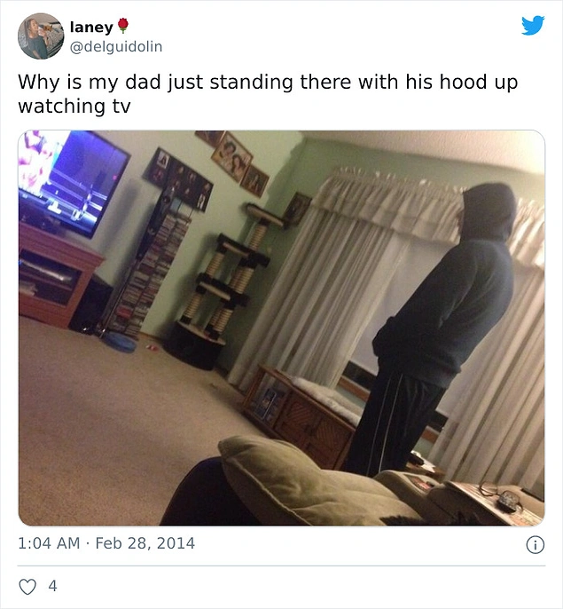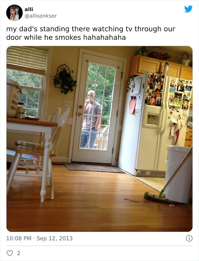 7. "Папа смотрит телевизор, стоя за на улице во время перекура.Это очень смешно"
