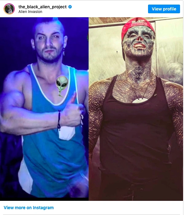 Энтони Лоффредо, у которого более 740 000 подписчиков в Instagram на странице под названием "The Black Alien Project (Проект Черного пришельца"), известен изменениями, которые он внес в свое тело, чтобы выглядеть как инопланетянин.