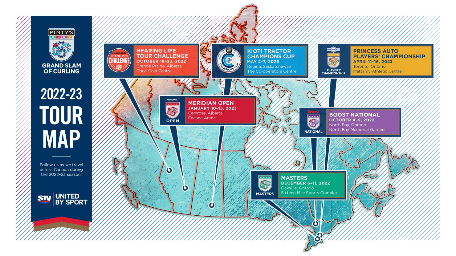 Оргкомитет турниров по кёрлингу серии Большого шлема анонсировал даты и места проведения соревнований на сезон 2022-2023: