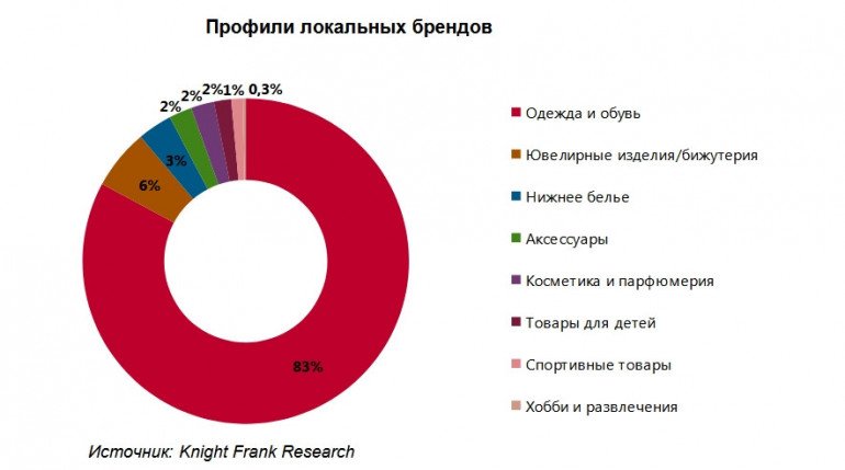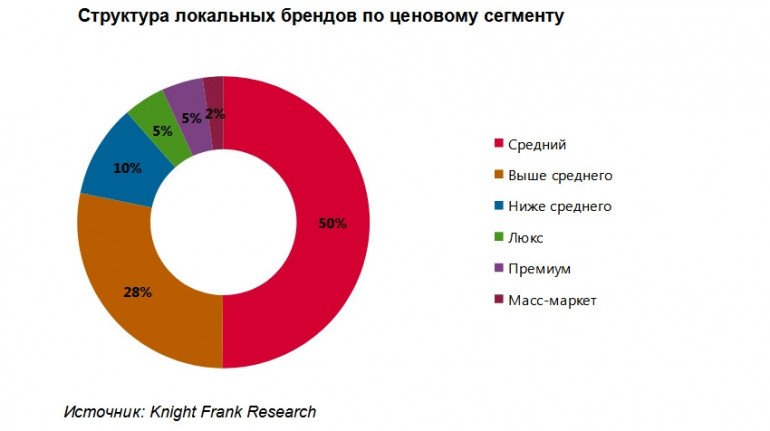 Как отмечают эксперты, ритейлеры категории fashion предпочитают размещать свои бренды на мультибрендовых дизайнерских площадках в крупных торговых центрах, занимая там корнеры, островки и pop-up-пространства. А в стрит-ритейле обустраивают бутики и шоу-румы. Согласно исследованию, среди 350 российских компаний большую часть составляют представители сегмента «одежда и обувь» – их доля 83%. На ювелирные украшения и бижутерию приходится 6%, сегмент нижнего белья – 3%. При этом половина всех отечественных марок выпускается в среднем ценовом сегменте, а 26% – к сегменту «выше среднего».