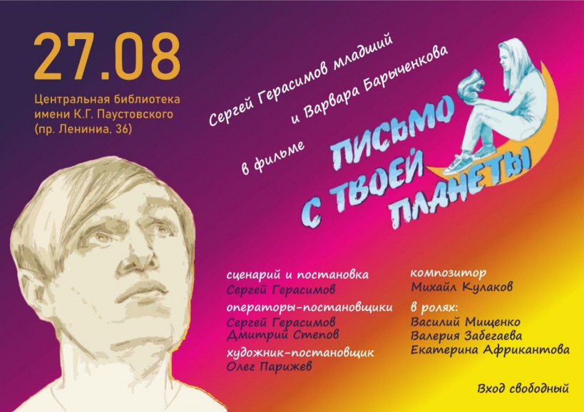 Центральная городская библиотека имени К.Г. Паустовского приглашает27августана кинопоказ короткометражного художественного фильма «Письмо с твоей планеты».