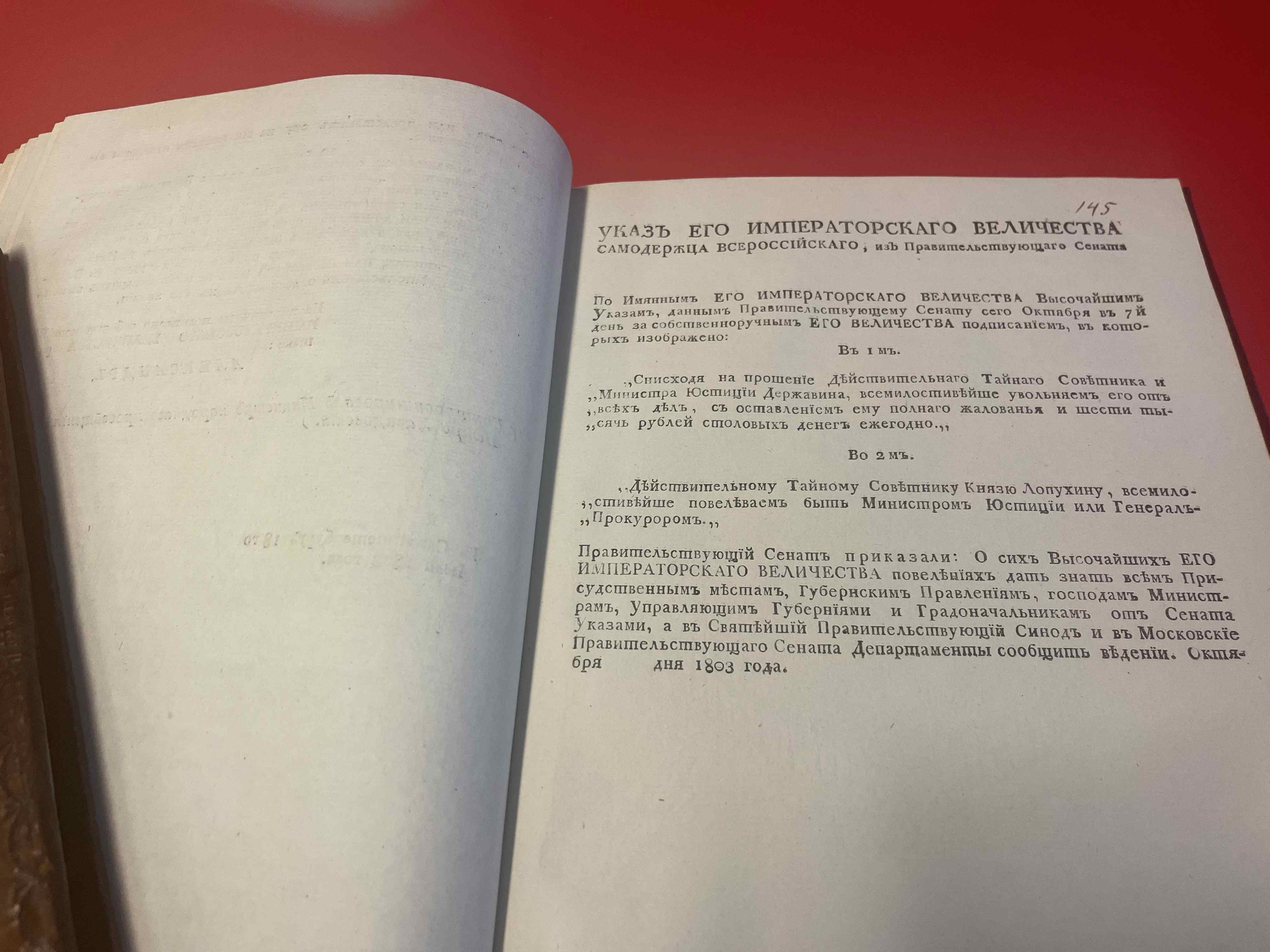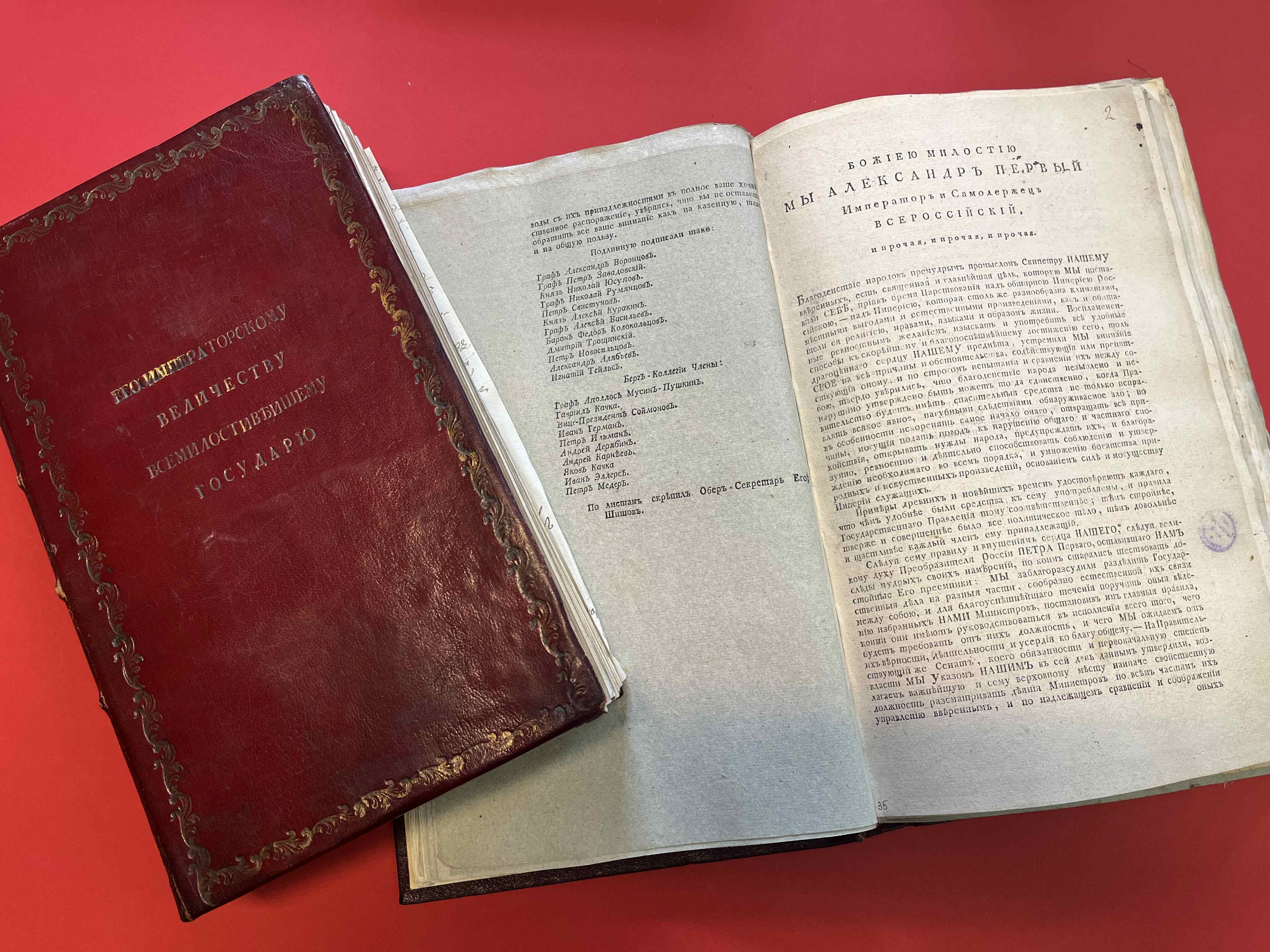 Посетители выставки смогут увидеть своды законов, указы, уставы, очерки, изданные за более чем двести лет существования Министерства юстиции. Среди изданий - первый акт министерской реформы императора Александра I манифест «Об учреждении министерств» 8 сентября 1802 года, по которому на основе Юстиц-коллегии было учреждено Министерство юстиции, а также «Отчёт министра юстиции князя Петра Лопухина за 1804 г.» (СПб., 1806 г.), «Обвинительную речь министра юстиции и генерал-прокурора Дмитрия Набокова по делу о покушении на императора» (СПб., 1879 г.), «Мысли и замечания графа Дмитрия Блудова» (1866 г.), юбилейный исторический очерк «Министерство юстиции за сто лет» (СПб., 1902 г.) и другие.
