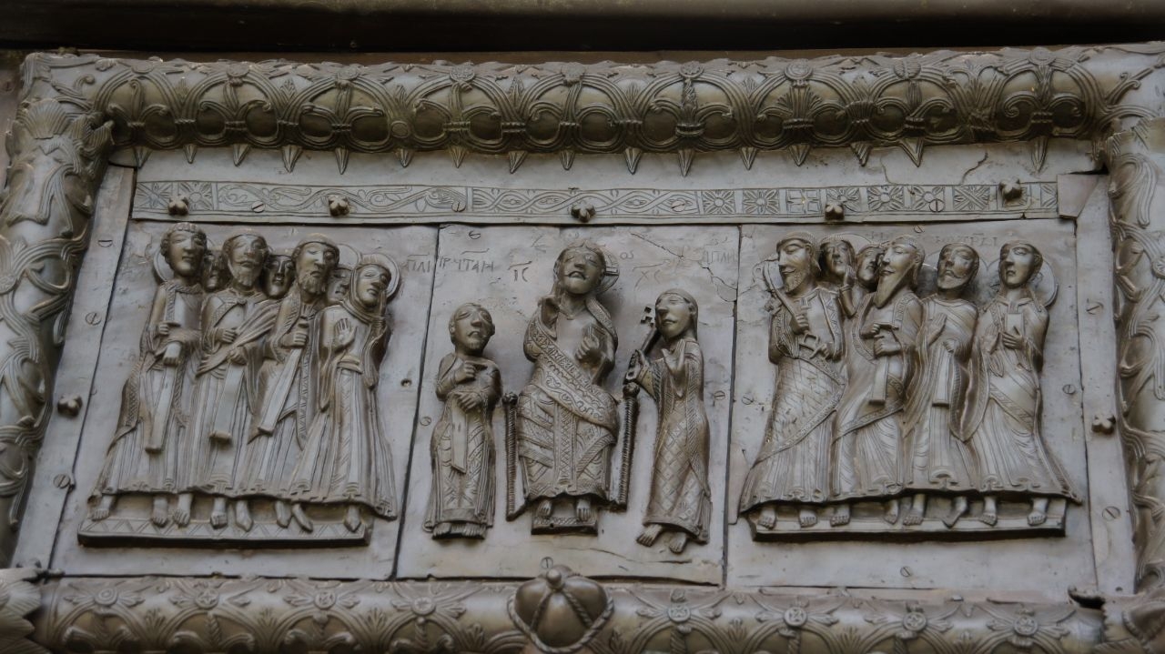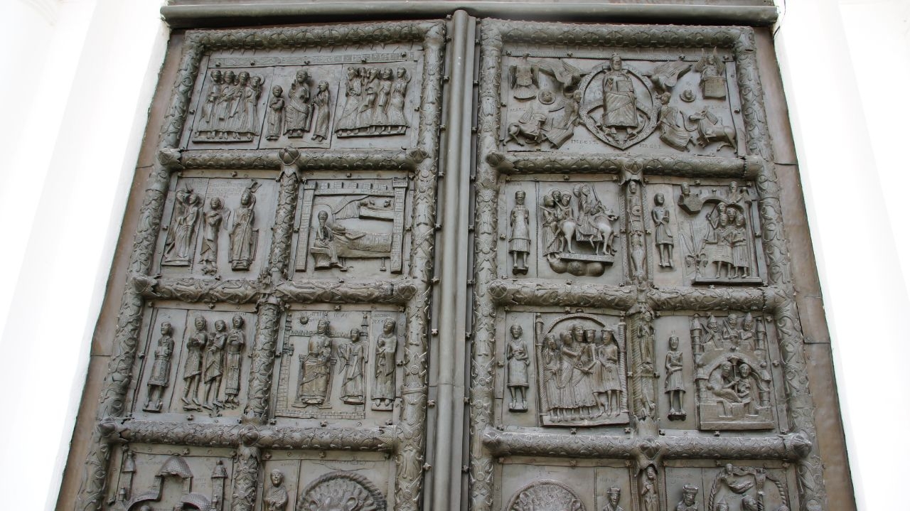Если бы в Софийском соборе были только одни Сигтунские врата (они же Магдебургские, Корсунские и Плоцкие), то только ради них стоило внимательно ознакомиться с внешним обликом и историей собора и врат. Я их все-таки называю Сигтунскими, несмотря на то, что историки оспаривают версию захвата этих врат русской дружиной в столице Швеции Сигтуне. Ради этого я даже в свое время посетил небольшой городок Сигтуну недалеко от Стокгольма. С этими вратами связано очень много неясностей, но факт остается фактом — они представляют собой ранне-средневековый шедевр бронзового литья с 48-ю библейскими фигурами. В этом может убедиться каждый, побывав в Новгородском Кремле, а историю Сигтунских врат вы узнаете в интернете, выбрав для себя наиболее понравившуюся версию. Москвичи могут подготовиться к осмотру оригинала врат, посетив Исторический музей, где имеется копия.