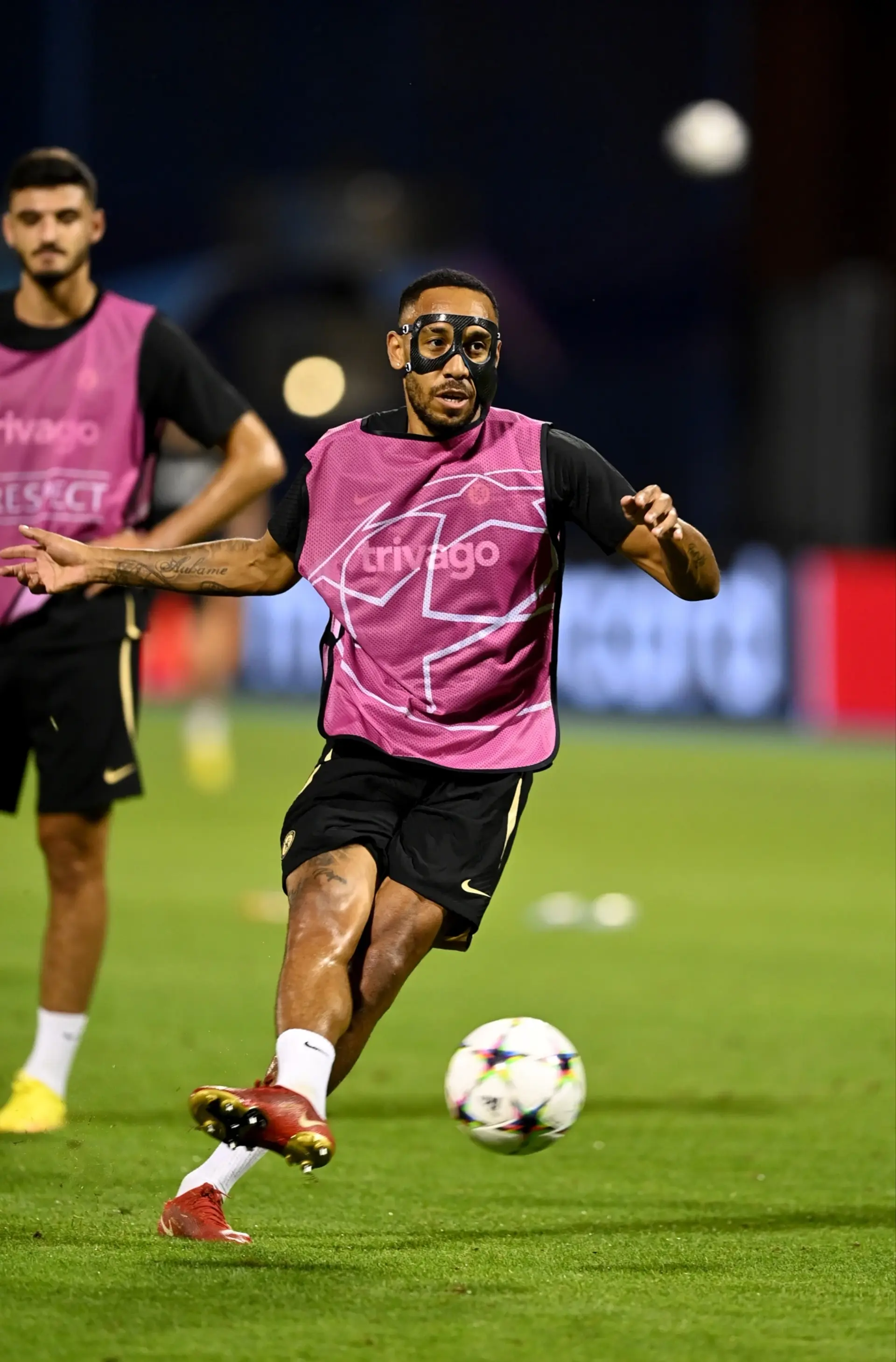 Новый нападающий «Челси» Пьер-Эмерик Обамеянг тренировался с командой перед их первым матчем Лиги чемпионов против загребского «Динамо».