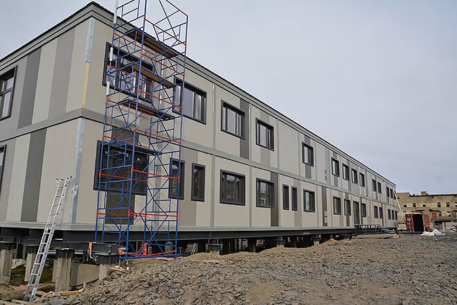 Строительство новой модульной гостиницы полным ходом идёт в Певеке в эти дни. К настоящему времени здание отеля построено, выполнены кровельные работы, завершается отделка номеров. «Сейчас мы проводим работы по подключению инженерных сетей к зданию, – говорит руководитель проекта в г. Певеке АО «Эльконский ГМК» Сергей Важинский. – Скоро приступим к сборке мебели и к концу сентября закончим все основные работы. Нам останется только выполнить работы по благоустройству территории гостиницы». Напомним читателям, что новый отель на 80 постояльцев находится недалеко от Чаунской районной больницы. Проектом в гостинице предусмотрено восемь номеров класса люкс и 32 «стандарта».