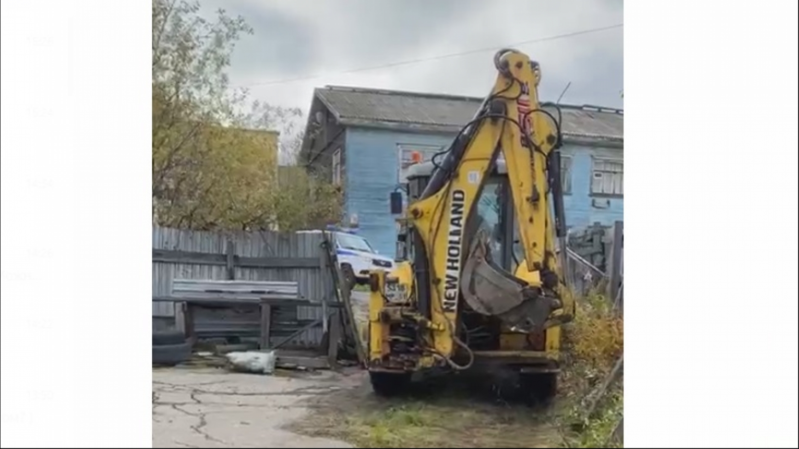 Трактор выехал за огороженную территорию. Люди до этого заняли собственные квартиры в здании и отказались выходить наружу, тем самым, остановив работы.