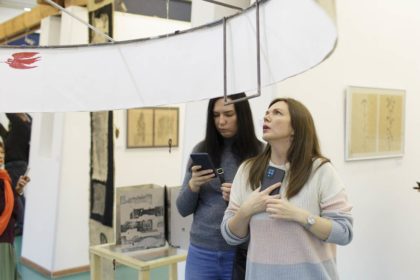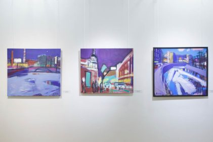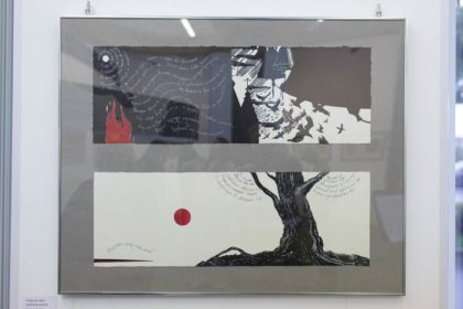 Мотив дороги объединяет две выставки, открывшиеся в один день в Петрозаводске на разных выставочных площадках. «Не уходи» — так называется персональная выставка художника Андрея Ветрогонского, открытая в Музее изобразительных искусств Карелии. Выставка яркая, контрастная, отчасти хулиганская. Соседняя локация (медиацентр «Vыход» находится на том же проспекте Карла Маркса) в противовес оказывается медитативной, созданной из нюансов, звуков, линий, увлекающих тебя в какое-то личное путешествие — то ли в лес, то ли вглубь себя. Выставка «Книга странствий» Александры Анюхиной продолжает знакомить петрозаводчан с интересным подвидом искусства — книгой художника.
