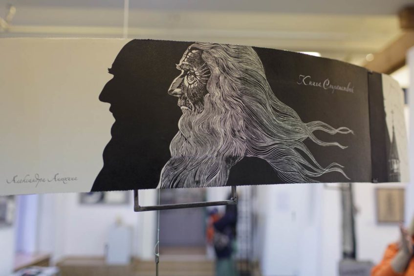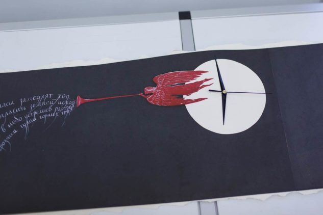 — Я не являюсь первооткрывателем этого жанра, я открываю его для себя. Я познакомилась с ним, когда писала магистерскую диссертацию. Книга художника была основным моим проектом, который получил название «Книга странствий». Я выбрала семь своих стихотворений, лейтмотивом которых стала тема дороги, жизненного пути, странствия, и вписала их в круговую конструкцию книги. Получилась инсталляция, вокруг которой проходит зритель, читая стихи. Этот путь зрителя — тоже часть инсталляции, — рассказывает на открытии выставки Александра Анюхина.