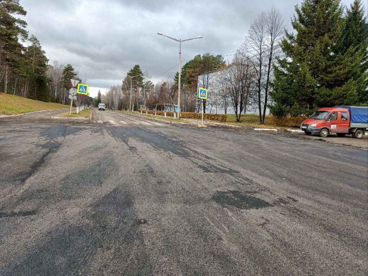 По проекту кроме ремонта дорожного полотна была заявлена замена бордюрного камня и ремонт тротуаров. На сегодняшний день эти работы не были выполнены. Пока рабочие сделали фрезеровку и уложили нижний слой асфальта. Еще предстоит положить верхний слой и сделать заезды.