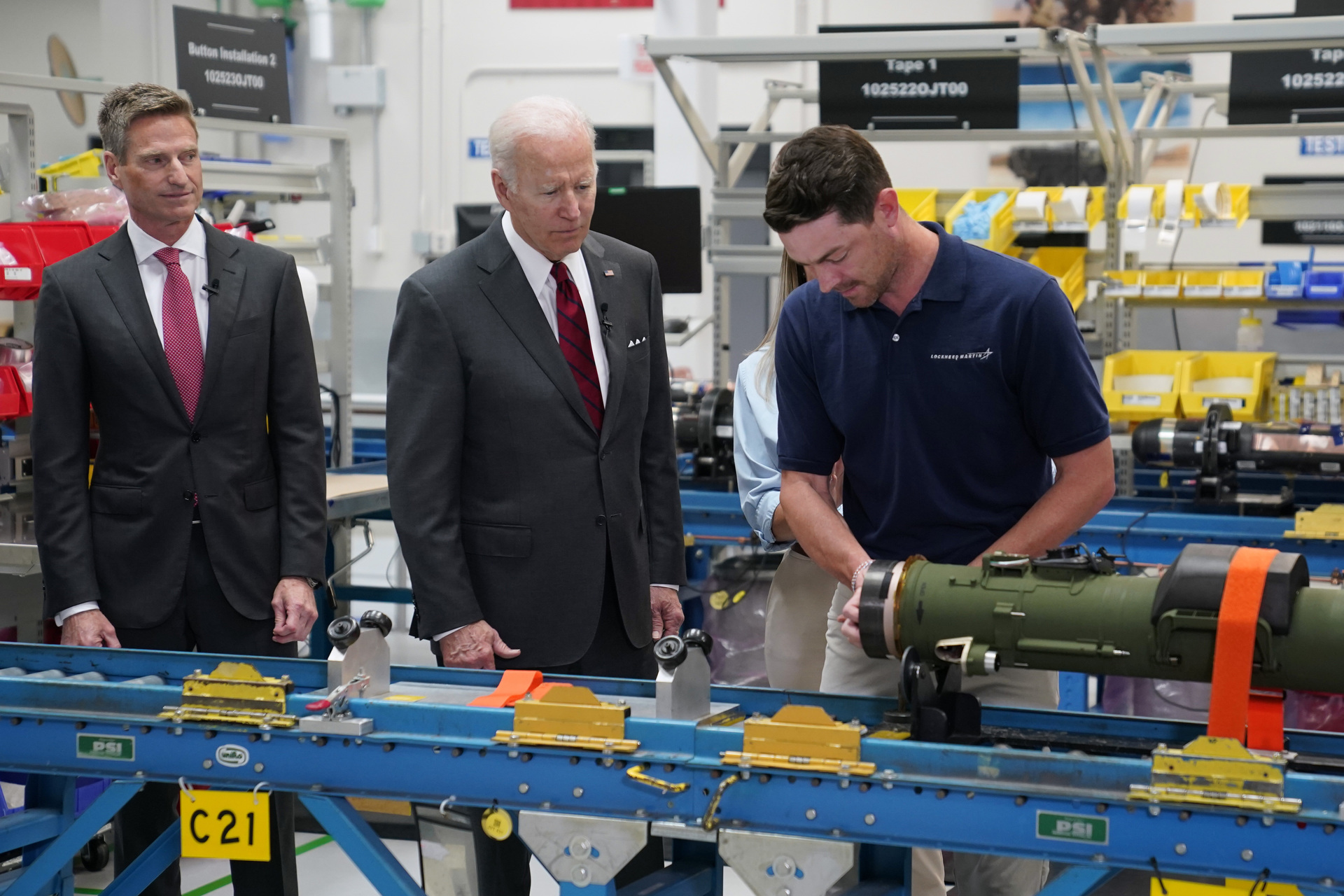 - Президент США Джо Байден (по середине) на предприятии Lockheed Martin, где производятся противотанковые ракеты Javelin