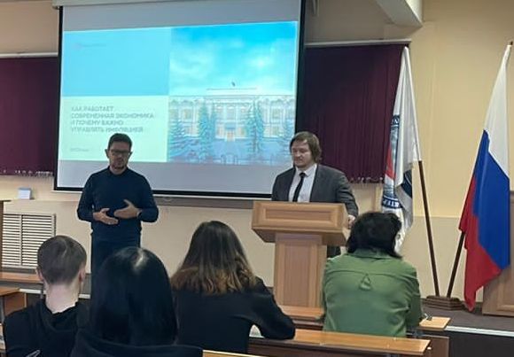 15 ноября во встрече со студентами и преподавателями Алтайского института экономики приняли участие сотрудники экономического отдела Отделения по Алтайскому краю Сибирского главного управления Центрального банка Российской Федерации Владимир Сергеевич Скрипин, выступивший с лекцией «Как работает современная экономика и почему важно управлять инфляцией», и Владимир Александрович Галенко, рассказавший студентам о различных финансовых инструментах, которые может использовать для сохранения и пополнения семейного бюджета каждый ответственный гражданин.