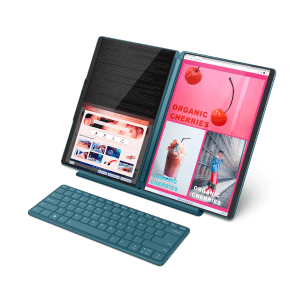 Lenovo Yoga Book 9i поставляется со стойкой Folio и отсоединяемой клавиатурой Bluetooth. Под рукой всегда будут два дисплея, как при наличии двух раздельных мониторов.