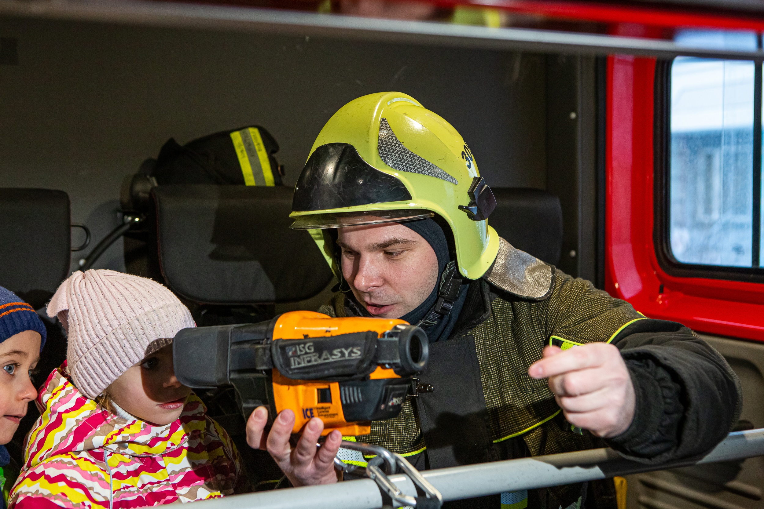 Вместе с заместителем руководителя ведомства Дмитрием Скоркиным в гости к участнице акции отправились и работники пожарно-спасательного отряда №309 из ТиНАО. Добрые волшебники приехали к дому девочки на настоящем пожарном автомобиле.