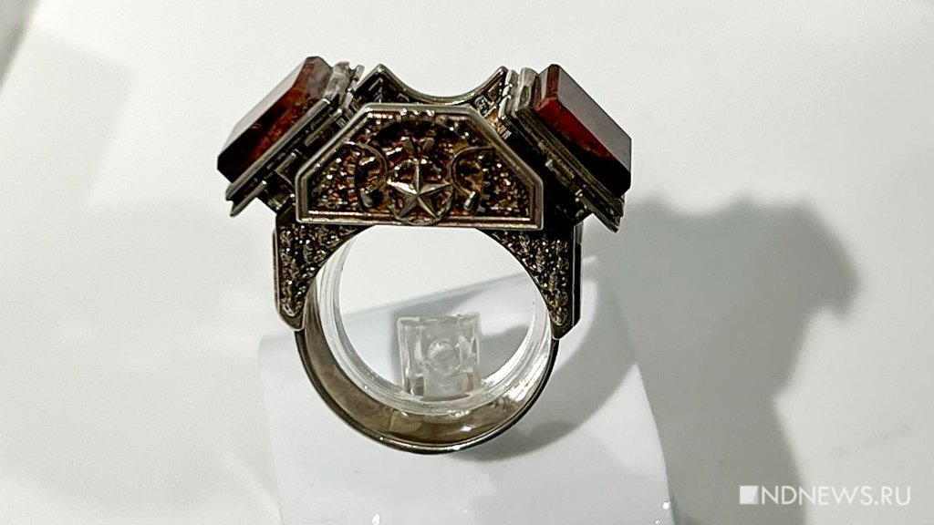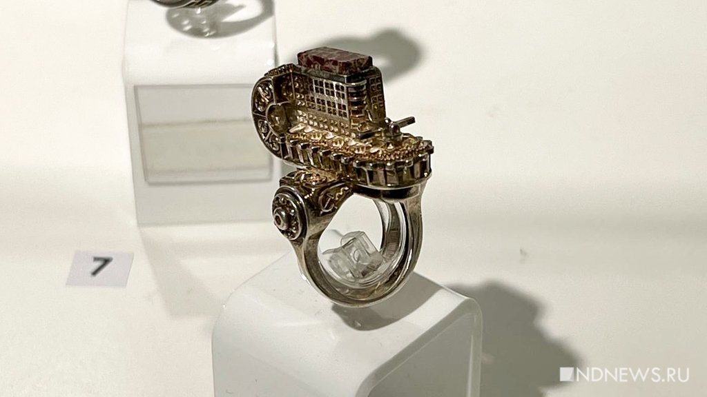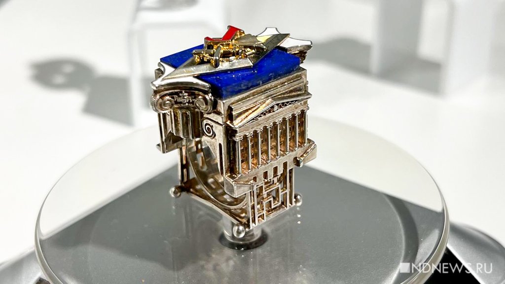 Помимо перстней-зданий Алексей Попов представил на выставке коллекцию, посвященную одному из недавних событий. Там представлены перстень и колье – большие буквы Z, увенчанные адамовой головой и надписью готическим шрифтом на латыни Ars longa, vita brevis (искусство вечно, жизнь коротка). Композиция называется «Коронавирус».