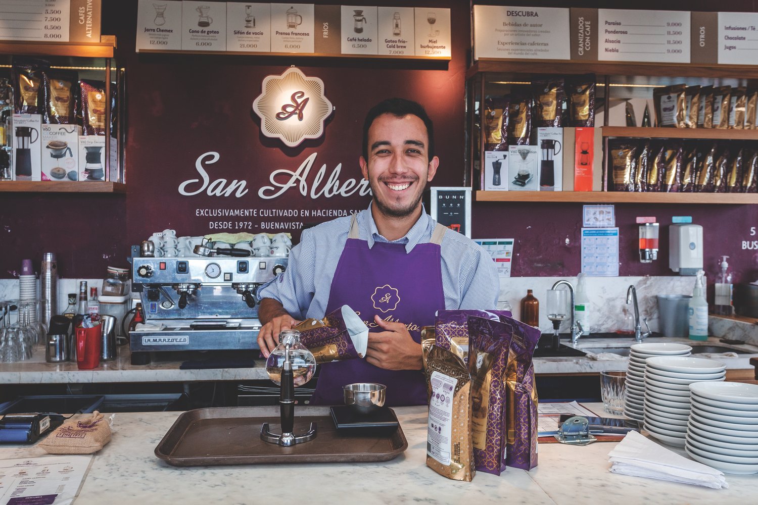 Бариста на кофейной плантации San Alberto в Кофейном треугольнике