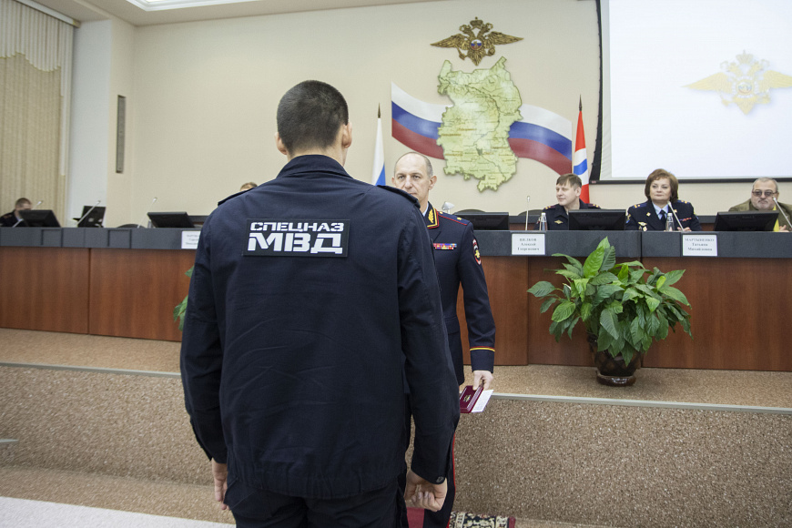 В Управлении МВД России по Омской области состоялось чествование сотрудников органов внутренних дел, вернувшихся в начале января текущего года из служебной командировки. На протяжении 6 месяцев полицейские выполняли поставленные задачи в Херсонской области.
