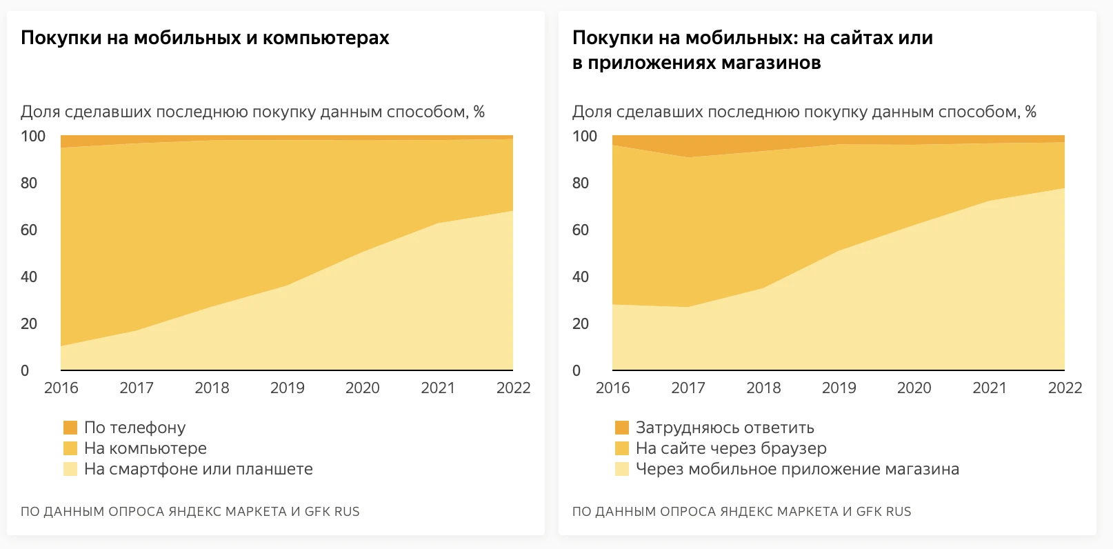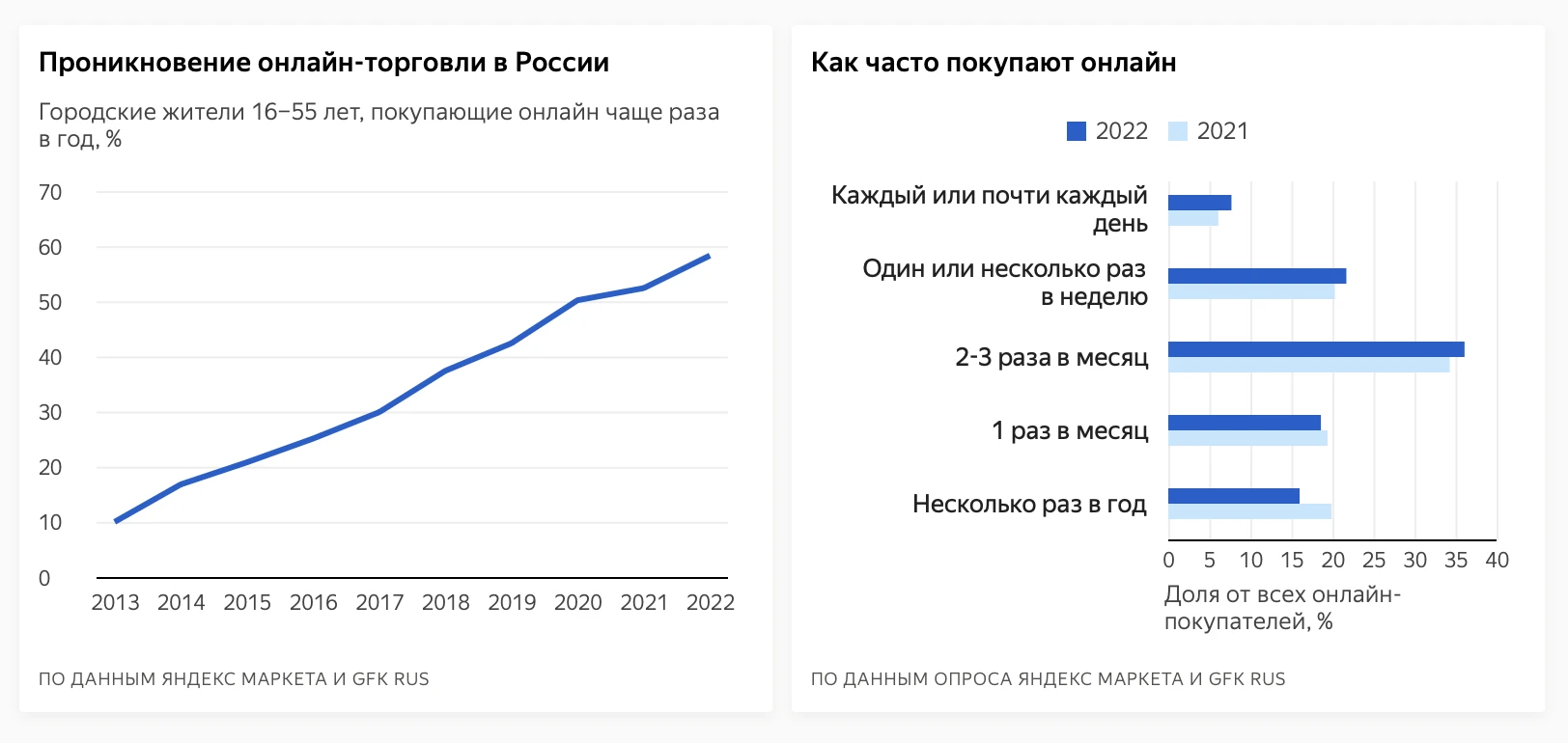 К 2022 году примерно 60% горожан от 16 до 55 лет как минимум дважды в год покупают что-то в интернете. Из них 85% делают заказы раз в месяц и чаще, а 30% — раз в неделю.
