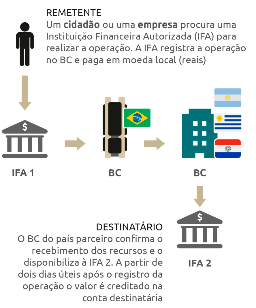 Работает это примерно так — сделка регистрируется в уполномоченной финансовой организации, которая вступает в контакт с ЦБ своей страны, который, в свою очередь, регистрирует сделку и принимает деньги в локальной валюте. ЦБ второй страны получает информацию и в течение двух дней переводит средства на счет компании уже в местной валюте. Пересчет идет по курсу, который устанавливают ЦБ ежедневно.