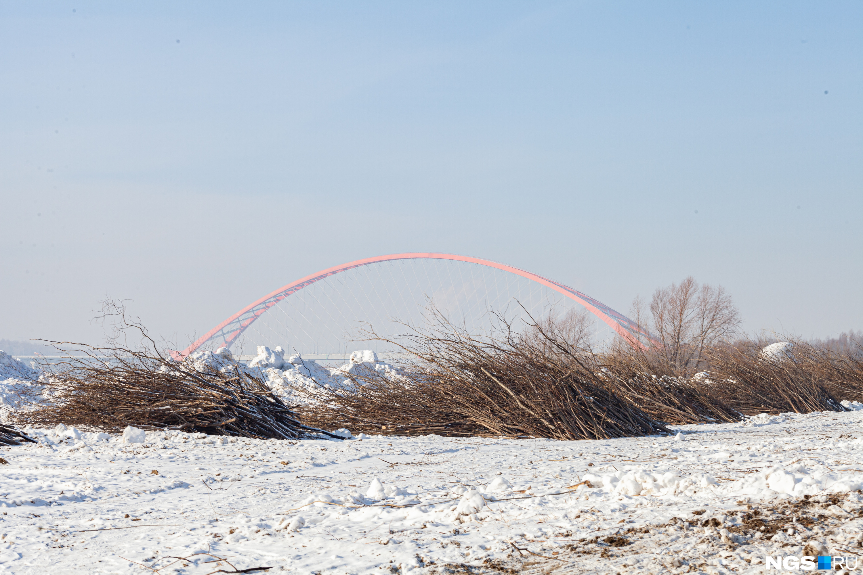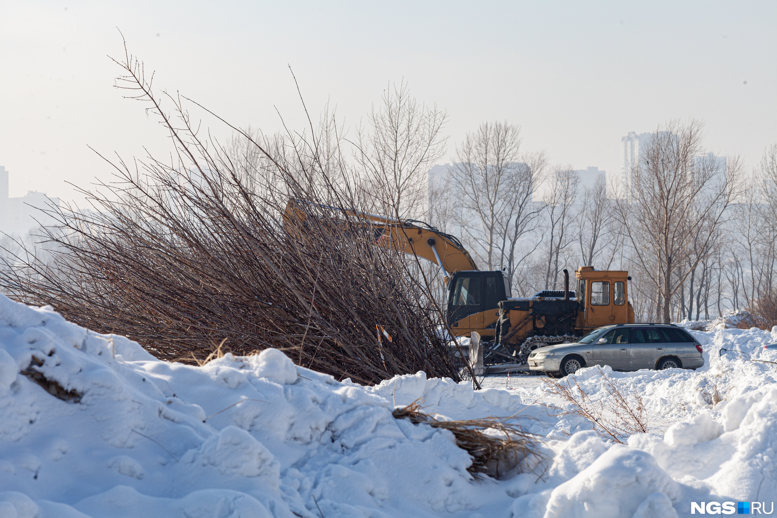 Возле коттеджного поселка «Заречный» в Первомайском районе развернулась кипучая деятельность: рабочие пилят кусты и небольшие тополя у берега Оби, складывают ветки аккуратными кучками и тяжелой техникой раздвигают трехмесячные сугробы.