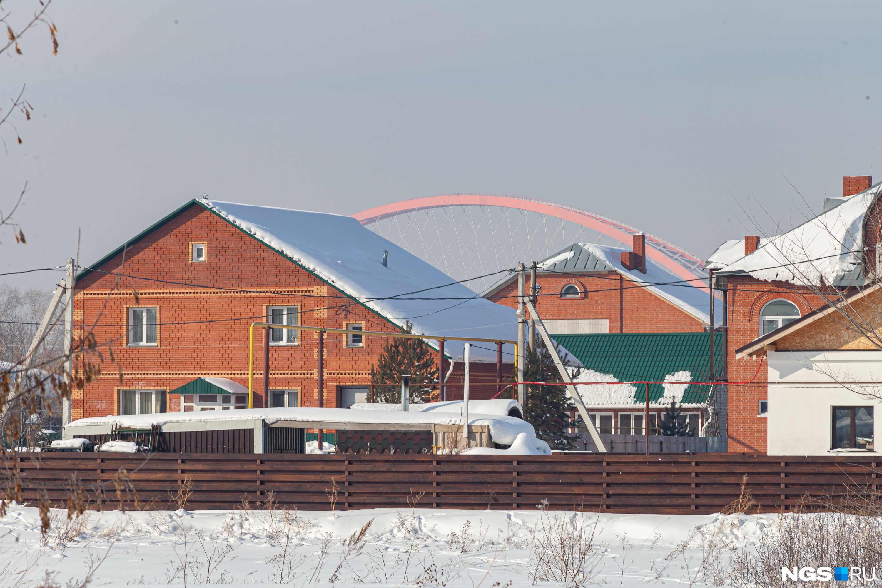 Практически из любой точки поселка видно арку Бугринского моста, парящую над крышами