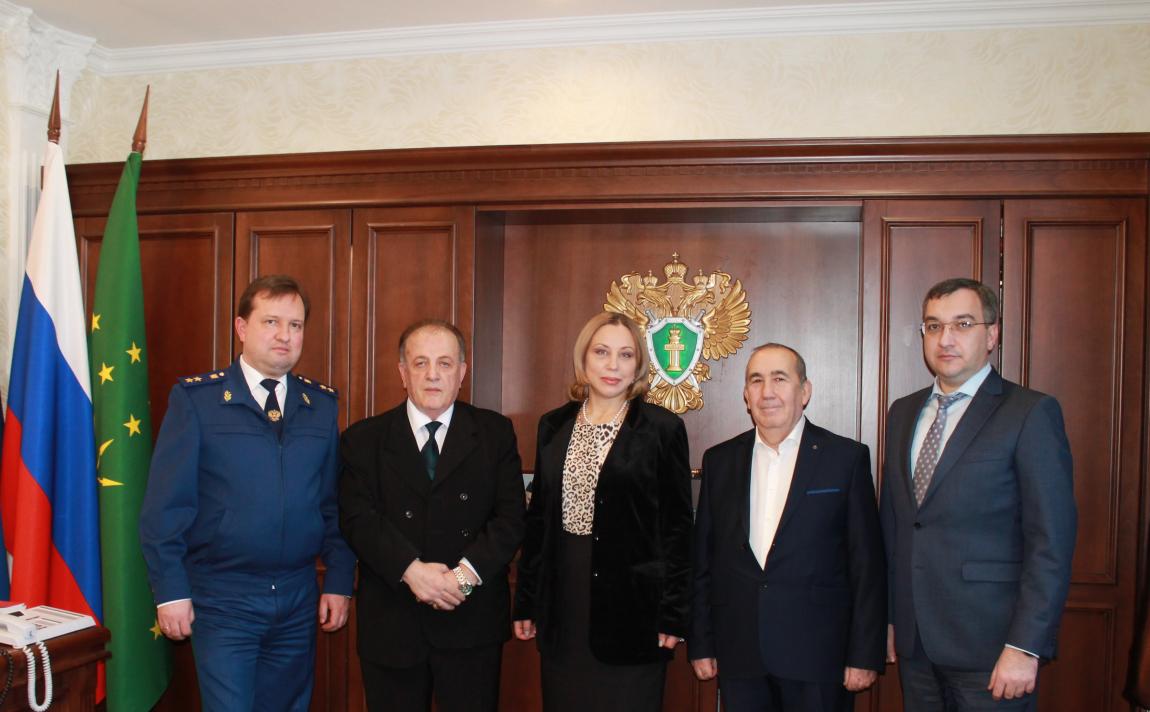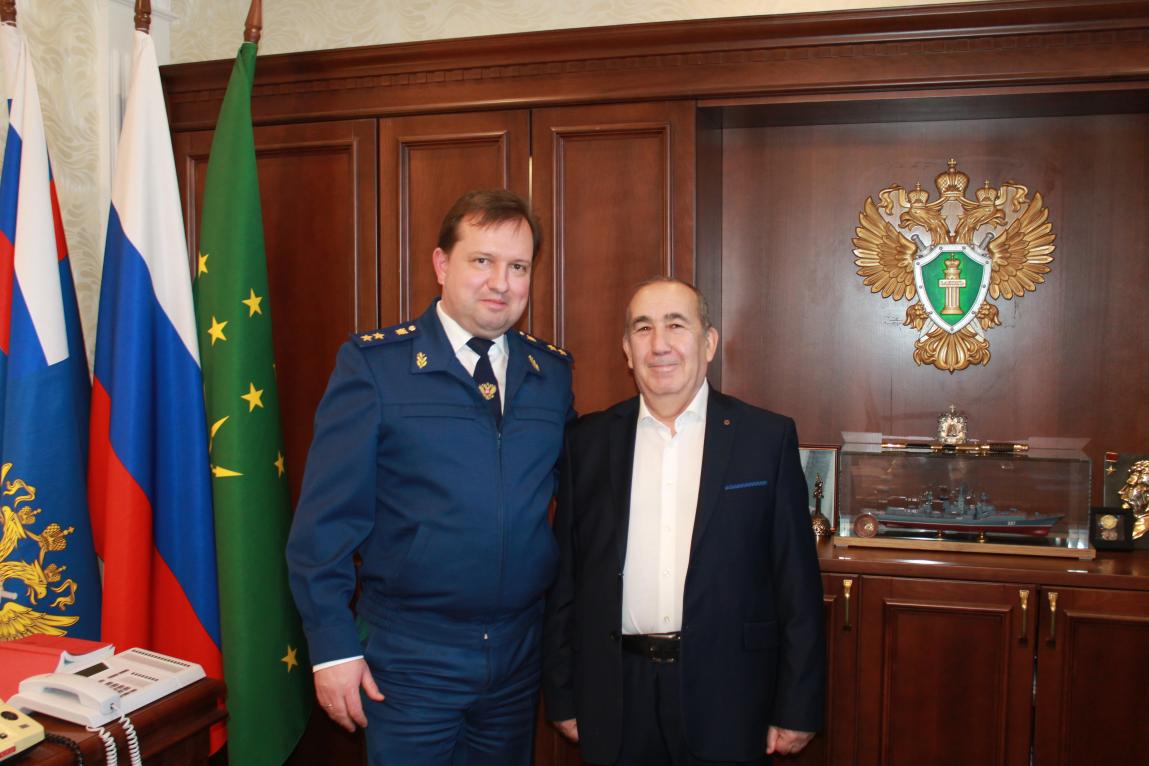 Прокурор Республики Адыгея Игорь Шевченко, работники прокуратуры республики и член Совета ветеранской организации органов прокуратуры Республики Адыгея Лариса Ивановна Волчановская поздравили ветеранов органов прокуратуры Георгия Грантовича Хастяна и Байзета Мадиновича Хута с их юбилеями.