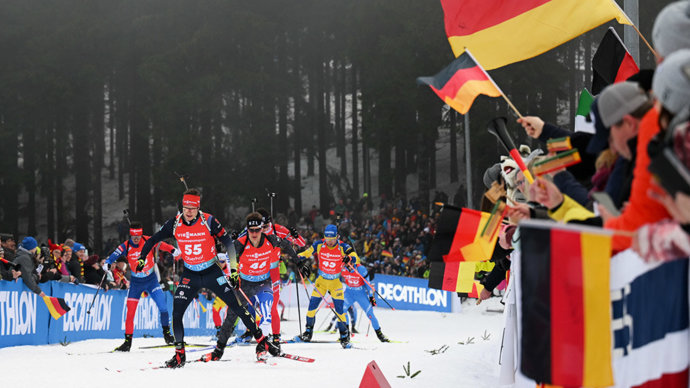 В Германии элитные биатлонисты чувствуют себя как настоящие звезды, поэтому неудивительно, что зрители готовы на все ради того, чтобы прикоснуться к легендам: