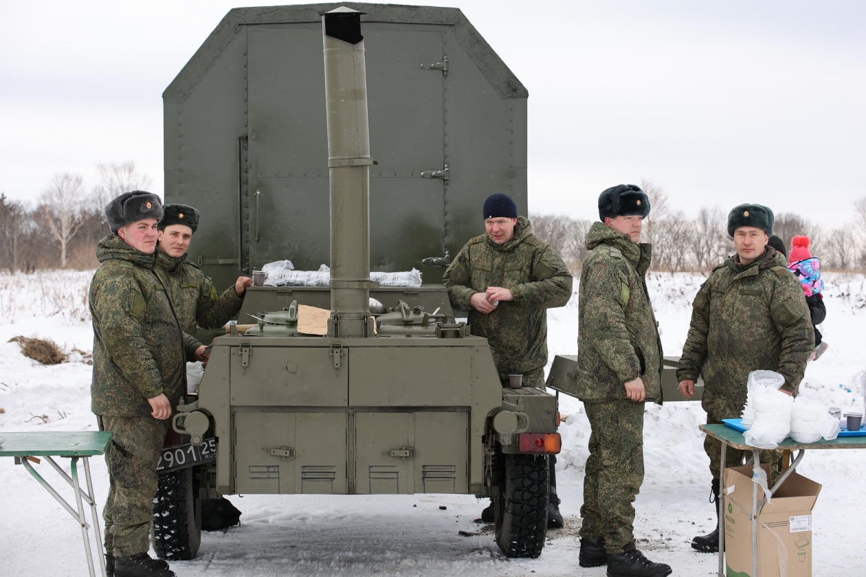Солдатская каша и горячий чай, кофе и выпечка — организаторы подготовили несколько точек питания для патриотически настроенных сахалинцев. Полевая кухня, как всегда, самая востребованная, как и вкуснейший плов от Ассамблеи народов Сахалинской области.