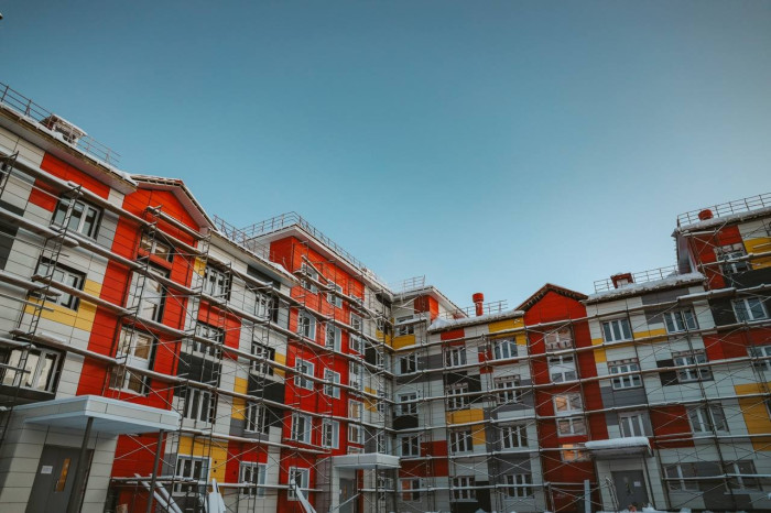 Дома являются частью общего комплекса из трех корпусов, площадью 18 тысяч квадратных метров. Еще один дом на 140 квартир будет сдан до конца этого года. Комплекс на 379 квартир сменной 4-5 этажности объединяет единый внутренний двор. На общедомовой территории уже проведено благоустройство – установлены детские площадки, оборудованы проезды и тротуары, а также парковка для автомобилей. Озеленение началось еще в летнее время в прошлом году, когда было высажено 45 деревьев.