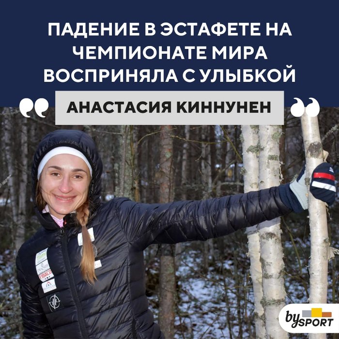 Известная в прошлом белорусская биатлонистка Анастасия Киннунен, ныне представляющая Финляндию, поделилась мнением об инциденте во время эстафетной гонки на чемпионате мира-2023. На своем этапе уроженка Городка упала и потеряла лыжу, что лишило ее команду шансов на высокое место.