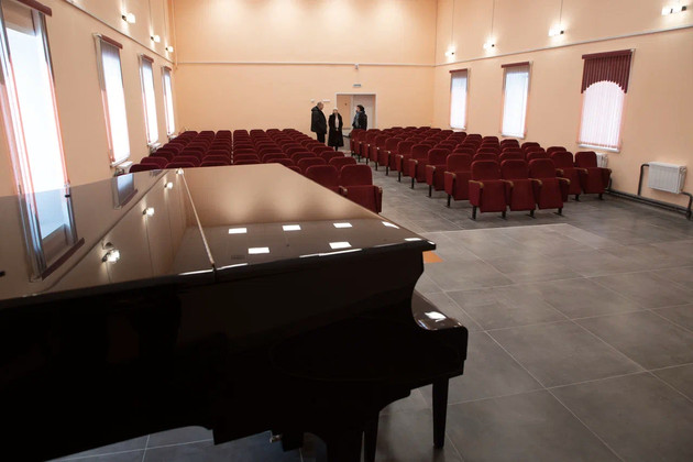Мы проходим в актовый зал. Он впечатляет своей красотой и масштабностью. Уверена, что воспитанники ДШИ будут с нетерпением ждать каждый концерт. И зрителей теперь будет явно больше, ведь новый зал рассчитан на 170 человек.