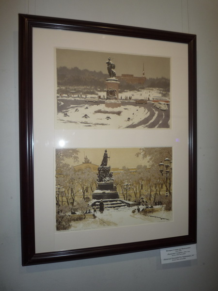 Зал графики самый обширный. Он включает в себя около сорока произведений. Здесь много оригинальной графики, акварелей, печатной графики; совершенно разные стили и различные манеры письма.