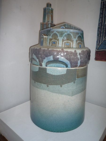 Декоративная композиция «Город в белую ночь» (1981 г). всемирно известного керамиста, Народного художника РФ Владимира Николаевича Гориславцева привлекает сочетанием объёмной формы и росписи. Мастер создал яркий, индивидуальный стиль и очень выразительно воплощает образ Ленинграда и Петербурга в своих работах. Зачастую автор показывает не парадный город, который нам хорошо известен, а знакомит с теми уголками, по которым нужно бродить неспешно, с теми, которые, как утверждают сами петербуржцы, знакомы только художникам, поэтам и влюблённым.