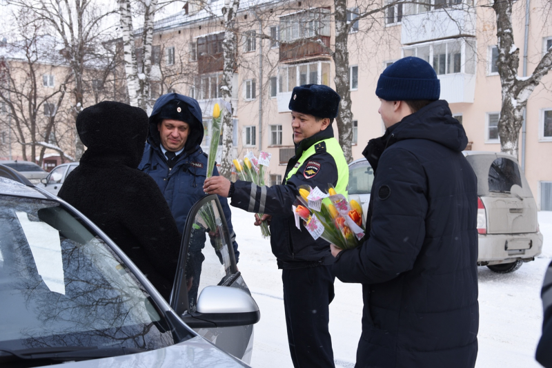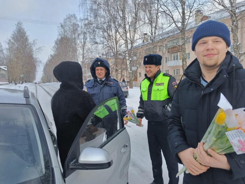 Останавливали сегодня только девушек! Мужчины поздравляли дам с наступающим праздником, говорили много приятных слов, желали спокойной и без аварийной езды. Так же напоминали, что в праздничные дни не стоит забывать о соблюдении правил дорожного движения.