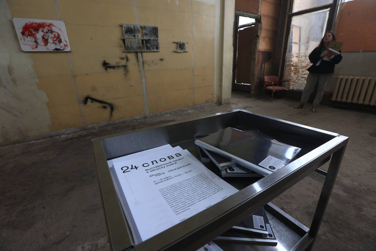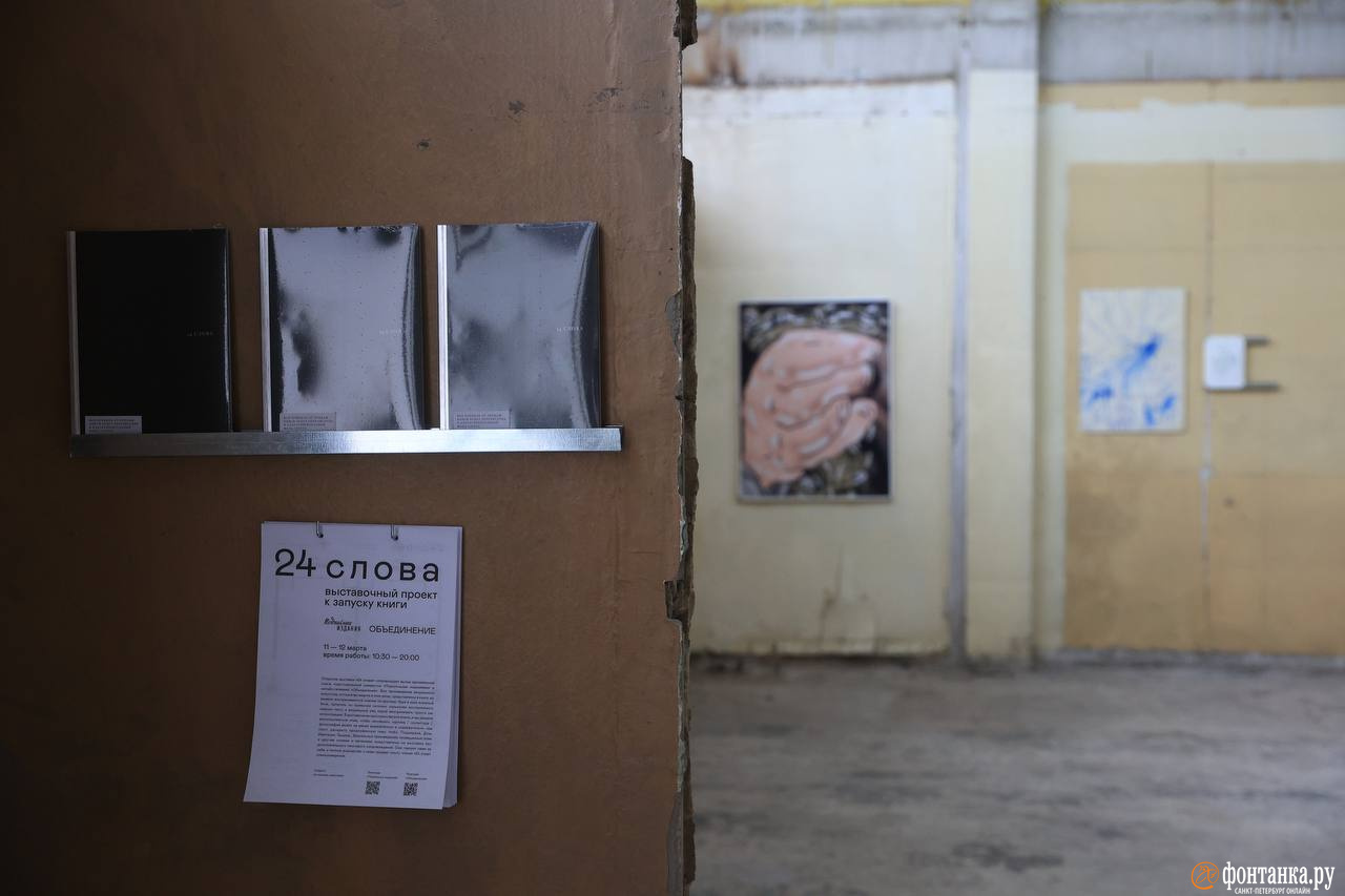 Книжный магазин «Подписные издания» 11–12 марта проводит первую выставку в своем новом и ныне ремонтируемом помещении, остановив работы на четыре дня. В пространстве бывшей «Академкниги» — то есть через стену от основного магазина — представлены 16 работ из вошедших в разножанровую книгу «24 слова».