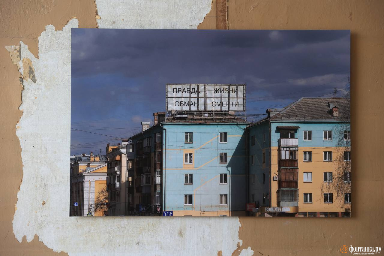 Из того, что обращает на себя внимание на мини-выставке, вход на которую возможен по предварительной записи, — серия МишМаш (Миша Лейкин и Маша Сумнина) «Город Друга» (в соавторстве с В. Мачинским): внезапно разбросанные между разными странами люди договариваются делать снимки мест, где они сейчас находятся, поместив посередине пейзажа горизонт. Соединяя работы, они словно стараются собрать свои города в единое пространство, сократив расстояния.