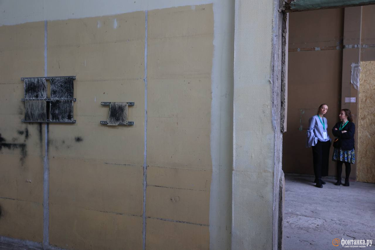 Пока что представить себе будущий внешний вид помещения «Подписных изданий», поделенного на два зала, сложно: на стене на втором ярусе сделаны «примерки» цвета — разные оттенки серо-голубого. Антресоли, пришедшие в плачевное состояние, еще предстоит заменить на новые, чтобы по ним в будущем смогли, не боясь, ходить будущие посетители букинистического и кафе.