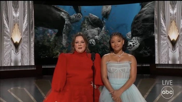 Организаторы пригласили звезд предстоящего фильма "Русалочка", Мелиссу Маккарти и Холли Бейли, чтобы анонсировать новый трейлер.