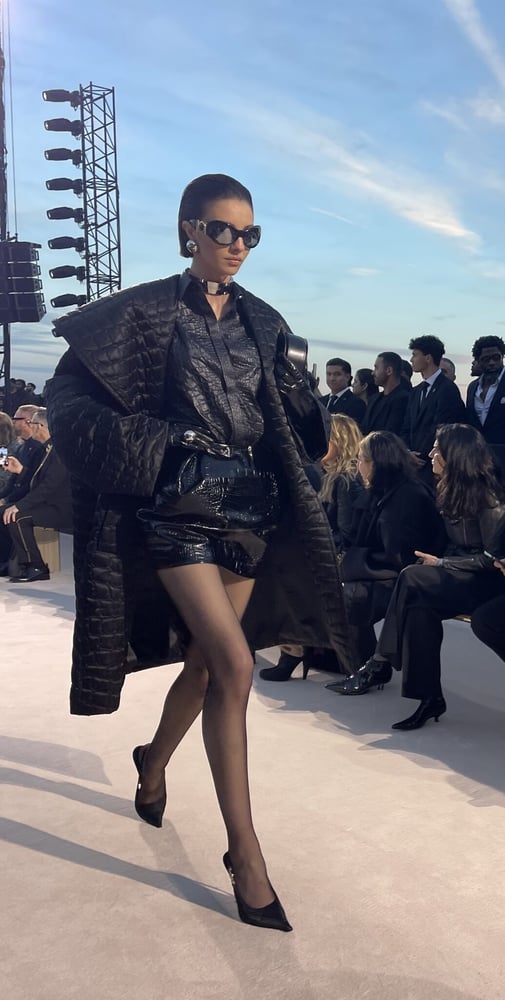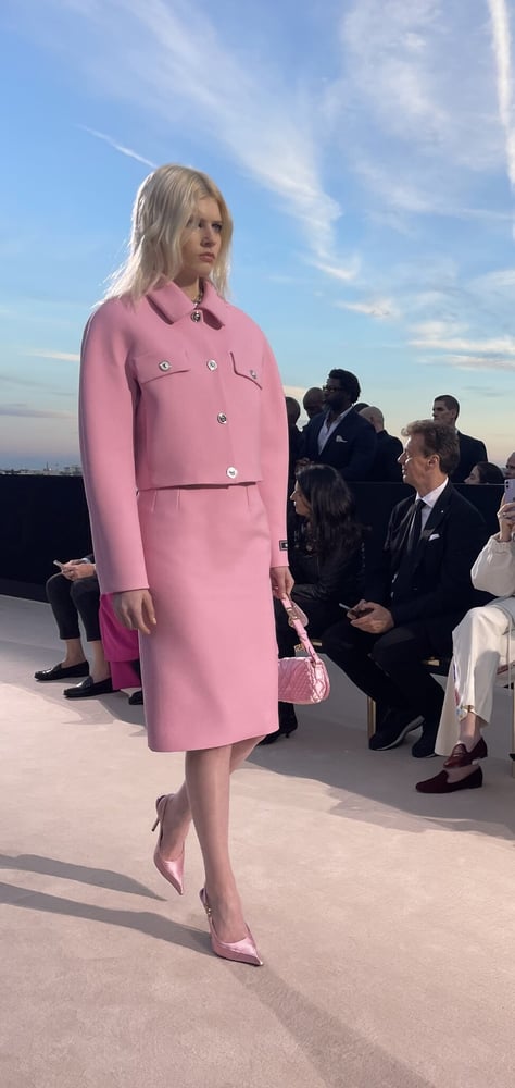 Звезды в свою очередь создали чудовищную очередь, в результате чего показ, запланированный на 17:00, задержался. Несмотря на холод – а было едва ли 15 градусов – там были все, от Дуа Липы до Натали Портман, Арианы Гранде, Николь Ричи, Деми Мур и инфлюенсеров тоже, включая Ши Мари, а также Пэрис Хилтон, которая пришла со всей семьей, и Энн Хэтэуэй, которая позировала в темных очках.