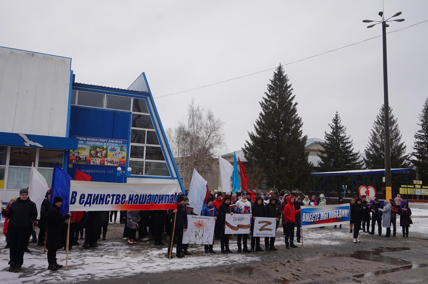9 лет назад – наш родной Крым воссоединился с великой державой – Россией! Теперь Крым и Россия навсегда едины. В нашем календаре навсегда добавилась еще одна праздничная дата – 18 марта. Мы отмечаем этот день как большой для нас праздник - «Крымская весна». В честь празднования 9 годовщины этого знаменательного события на центральной площади села Лопатино состоялся митинг «Снова вместе - Россия и Крым», в котором приняли участие глава администрации района Ольга Лапшина, учащиеся школы, сотрудники организаций. Колонны были украшены Российским триколором, лозунгами и плакатами. Над площадью прозвучал Гимн России.