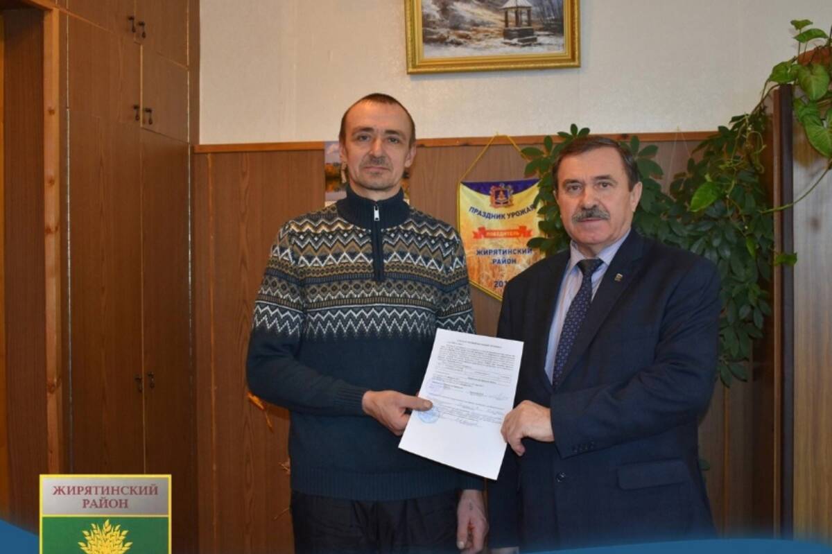 В Жирятинской администрации торжественно вручили сертификат на приобретение жилого помещения Сергею Снытко. До 1990 года мужчина проживал в красногорском селе Заборье, которое после Чернобыльской катастрофы стало зоной отселения.