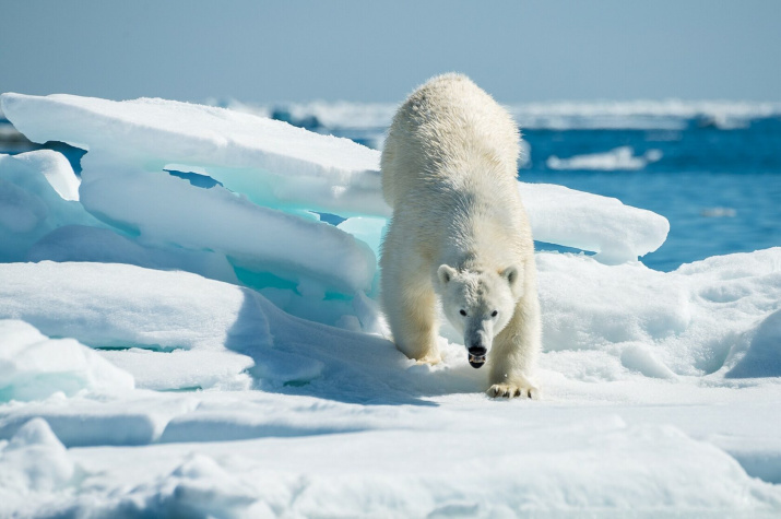 Белый медведь на заполярных льдах. Фото: Григорий Цидулко, участник фотоконкурса РГО "Самая красивая страна"